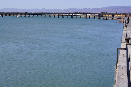 After a cuppa on the waterfront, we drove across the Hindmarsh Bridge (of "secret women's business" notoriety if anyone remembers this; the bridge itself is a crappy short 1 lane either way kind of bridge) to get to Murray Mouth, the site where the Murray River meets the open sea.The water is quite shallow at the Mouth and dredging of the sea opening is continuous. It is a beautiful spot with pelicans, various seabirds, and as always fishermen present. There were also some people filming a bit further away from us.